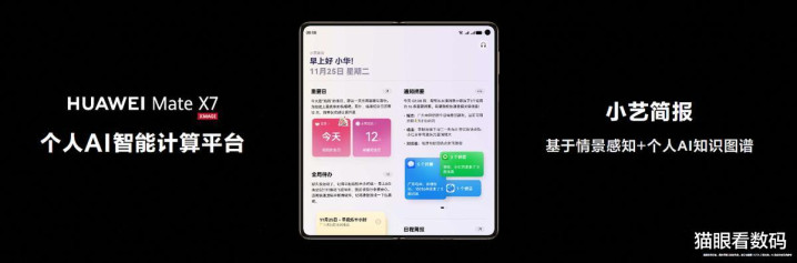 11月25日,HUAWEI Mate X7与HUAWEI Mate80系列的发布,首发搭载HarmonyOS 6。超能小艺的AI能力更进一步,并通过小艺帮帮忙、小艺慧记、分屏联动等创新功能,为职场人士提供了“AI+大屏”高效办公新选择。