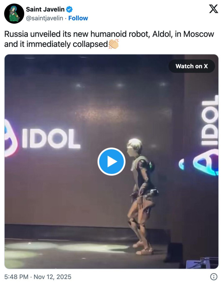 俄罗斯 Aidol 机器人翻车,CEO 强行正能量